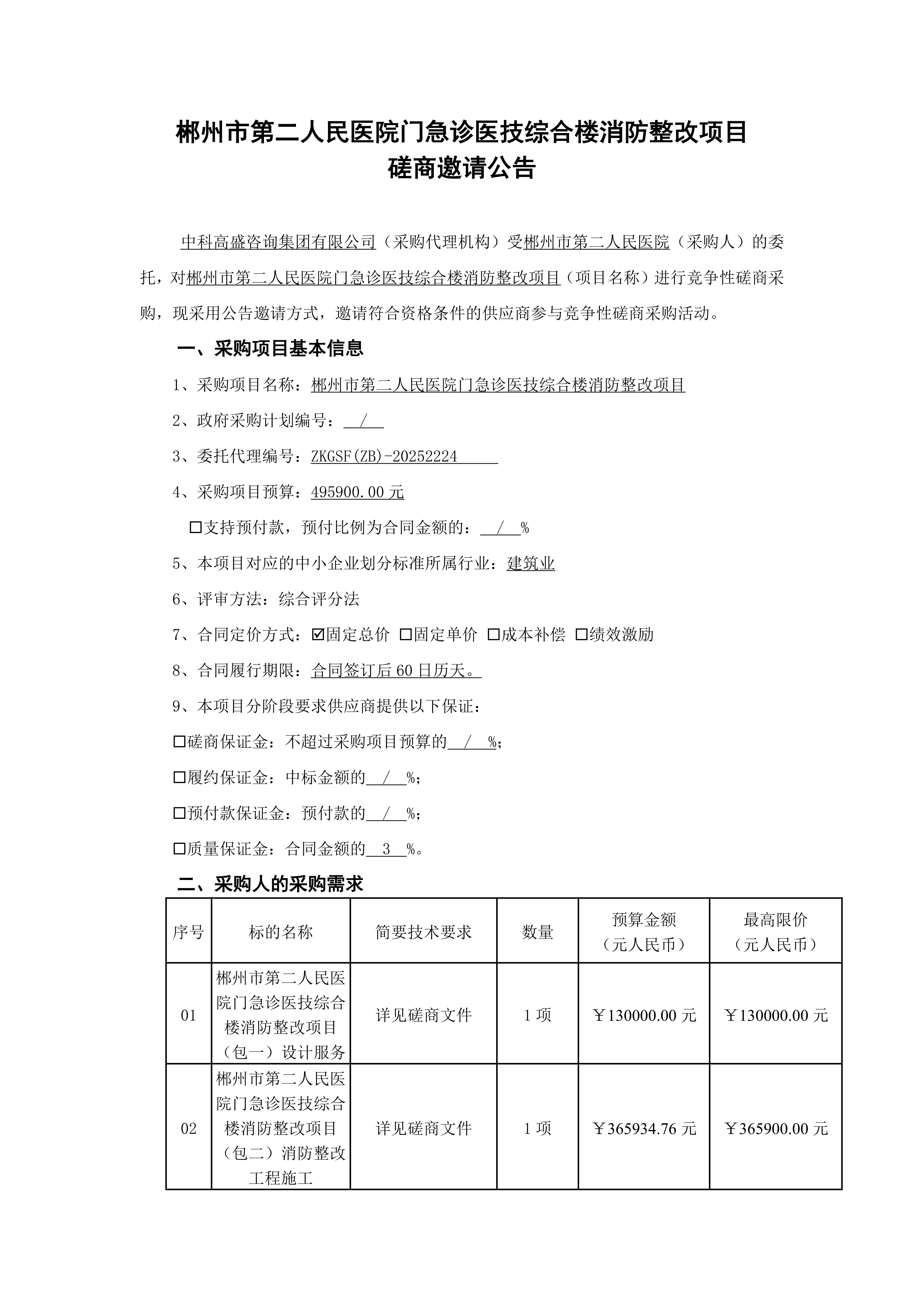 郴州市第二人民医院门急诊医技综合楼消防整改项目磋商邀请公告